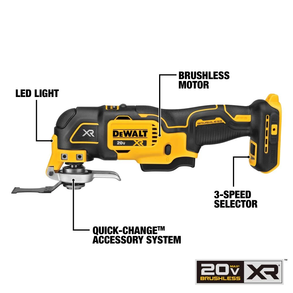 - DCS356: Oscillating multi-tool features the DEWALT QUICK-CHANGE accessory system that allows blades and attachments to be changed quickly without wrenches
