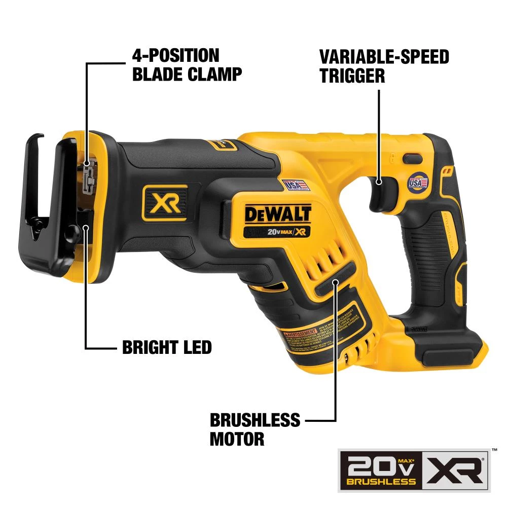 - DCS367: Reciprocating saw has a compact and lightweight design for making cuts in confined spaces like in between studs