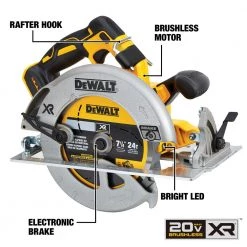 - DCS570: 7-1/2-in Circular saw provides gets up to 330 cuts in 2×4 pine using a DCB205 battery
