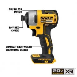 - DCF787: 1/4-in Impact driver is compact and lightweight for use in tight areas while the LED light provides visibility in dark space