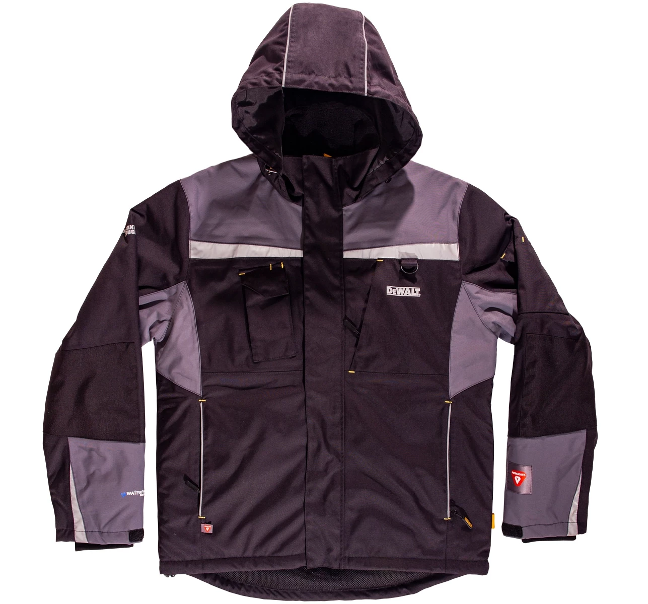 When cold weather hits, you will be ready with the DEWALT Primaloft insulated waterproof jacket. The outer layer is 100% Cordura nylon fabric; waterproof, breathable and windproof. Inside, the 100% Primaloft polyester insulation is topped with DEWALT’s aerospace mesh lining to keep the warm air circulating for total upper body warmth. The Primaloft has a full front zipper with storm flap and beard guard. The concealed hood inside the collar offers extra protection against the elements and the adjustable cuffs, with hook-and-loop tab, gives you a customized fit. The DEWALT Primaloft jacket has a microfleece lined collar for comfort against your face and neck. You’ll have plenty of personal storage with a left multipurpose chest pocket with a zip closure, right chest cell phone pocket with hook and loop closure and two lower reach-in pockets with covered zip closures. DEWALT also added one additional secure pocket inside the jacket and one multipurpose secure pocket on the left sleeve. You will be readily visible with reflective tape on the back, front and each sleeve of the jacket. For that little extra warmth, the Primaloft has a dropped tail with adjustable draw cords for added coverage and fit. Backed by DEWALT’s 100% guarantee against defects in materials and workmanship, DEWALT apparel is guaranteed to offer a level of fit, durability and comfort you would expect from workwear featuring the DEWALT name. You too will be “Guaranteed Tough” in your DEWALT Primaloft jacket.