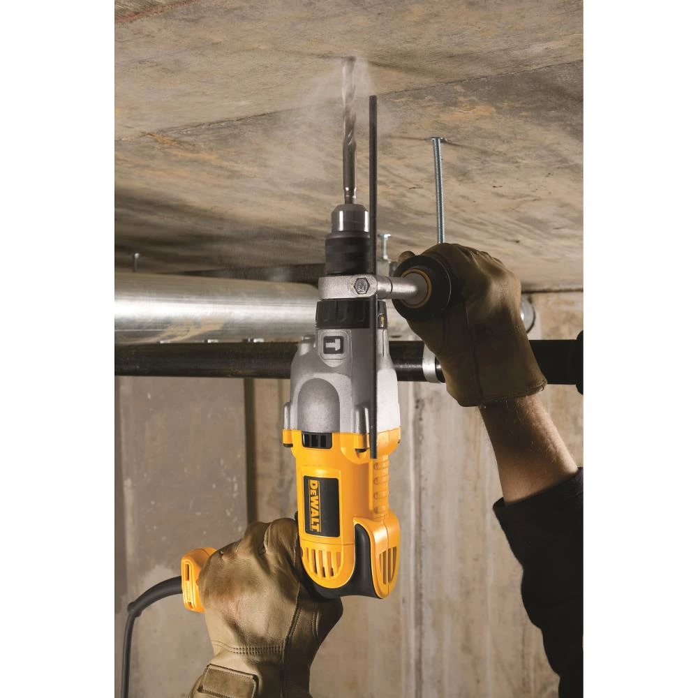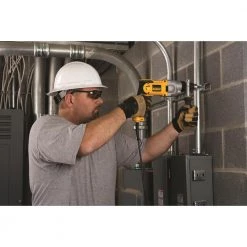 The DEWALT® 1/2 In. VSR pistol grip hammerdrill kit was created to do everything you need it to do without sacrificing strength. DEWALT® extensively tests its products on a wide range of real world jobsites, ensuring that it will live up to your standards. Two modes make the VSR pistol grip hammerdrill kit perfect for hammerdrill and standard drilling applications. With its patented, 10.0 Amp DEWALT®-built motor and 2 speed ranges, this hammerdrill kit is tough enough for any job.