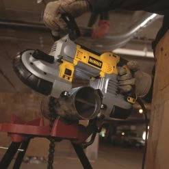 The DEWALT® deep cut band saw kit is built with exclusive features that make it the best in the industry, so you can use it with complete confidence. With its patented, 10.0 Amp DEWALT®-built motor and 5 In. deep cut capacity, this tool won’t let you down, even on tough, repetitive jobs. An LED sight light maximizes convenience in dark environments, and a serviceable steel shroud with rubber bumpers allows this saw to withstand jobsite abuse, so users know that DEWALT® has their back when and where it matters most.