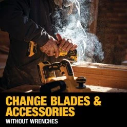 - DCS355 has a quick-change accessory system that allows blades and attachments to be changed quickly without wrenches