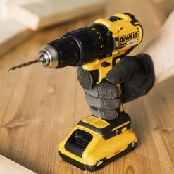 - Includes 1 compact hammer drill/driver, 1 battery, 1 battery charger, and 1 contractor bag
