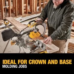 The DW715 12-in single-bevel compound miter saw is powered by a 15 Amp motor to drive 4,000 RPM, delivering extended power and durability. Features stainless steel miter detent plate and cam miter lock that provide repeatable accuracy and durability with easy adjustments. Tall sliding fences support 5-1/2-in of base molding vertically and 5-1/2-in of crown molding vertically nested. Lightweight design and built-in carry handle for portability.