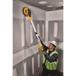 The brushless motor in this Cordless Drywall Sander increases runtime, durability, and speed consistency. Its AirLock connection, for use with DEWALT dust extractors, delivers a quick, secure, and tool-free connection to DEWALT Dust Extractors. The variable-speed dial for better control. The DCE800’s telescoping shaft and articulating head allow users to better reach their workspaces. To efficiently remove potentially harmful dust in the workplace, the tool is equipped with Wireless Tool Control for pairing with compatible DEWALT dust extractors.