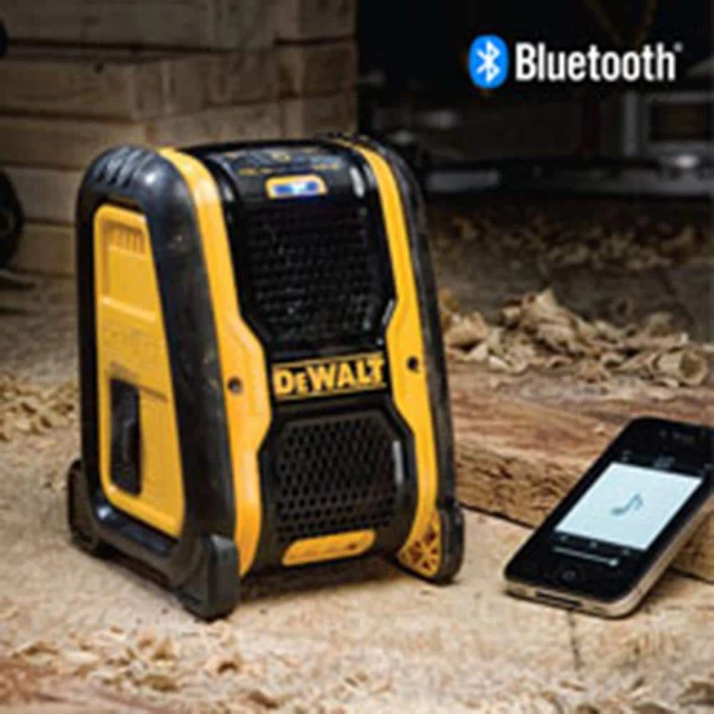 - DCR006 20-volt MAX Bluetooth jobsite speaker allows you to stream music wirelessly from your smart phone or tablet