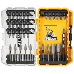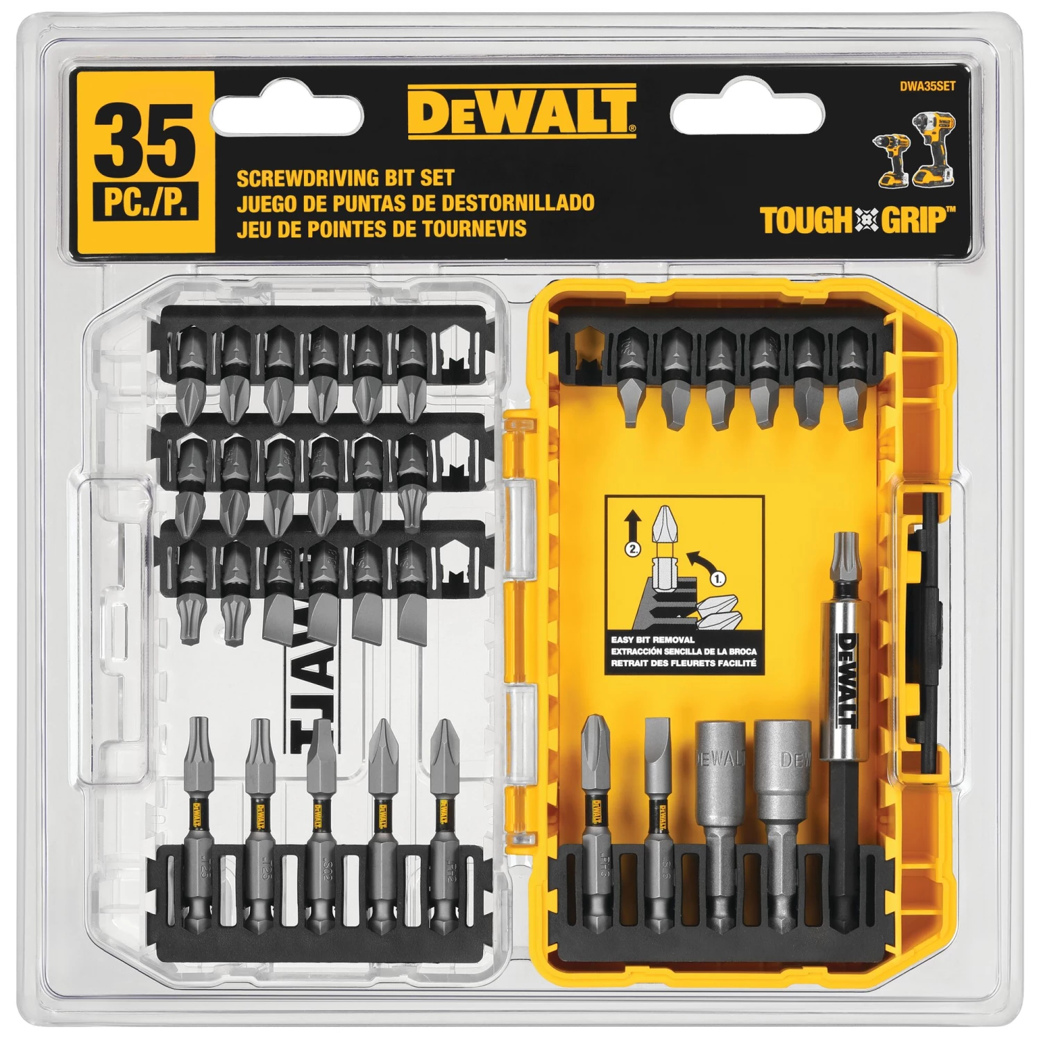 The DEWALT TOUGH GRIP™ 35-piece steel hex shank screwdriver bit set is a kit for the true handyman. It contains drill bits and screwdriver bits of various sizes, enabling you to work on a variety of projects. All bits feature a hex design that reinforces the strength of the bit tip. They’re made of heat-treated steel for maximum torque and sport an optimal form for precise fastener fitments. And they live up to their brand name: they offer a tight grip that results in fewer cam-outs and less frustration. All pieces are packed and stored neatly in a hard case, so it will be hard to lose any of the 35 pieces. Shop this steel hex shank screwdriver bit set at Lowes.com today.