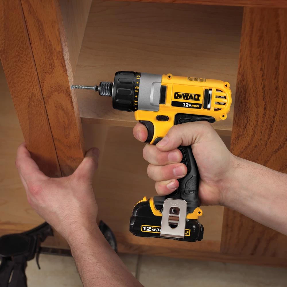- Includes DCF610 screwdriver (1/4-in), DCF815 impact driver (1/4-in), two 12-volt MAX lithium ion batteries, a fast charger, two belt hooks and a contractor bag