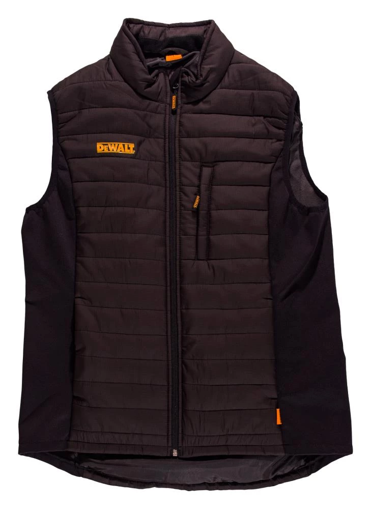 Everyone knows a warm core is vital to staying safe and protected in cold weather. The DEWALT Hybrid vest will keep you warm on those chilly days and can be used as an inner layer on the really cold ones. The side panels are made with 100% stretch polyester with an inside light layer of microfleece lining for warmth. The front and back panels are 100% ripstop nylon with a light layer of insulation for additional comfort. The Hybrid vest is very light, but provides plenty of warmth. It has a full front zipper with storm flap and beard guard.?he elastic bound sleeve openings give a snug fit to help trap the warm air. For a little extra buffer, zip it all the way up and use the funnel neck for additional protection from the elements. DEWALT added 3 covered zip closure pockets, 2 lower reach-in pockets and 1 multipurpose on the left chest. You will be proud to wear the Hybrid vest with the DEWALT logo on the right chest and back of the neck. Backed by DEWALT’s 100% guarantee against defects in materials and workmanship, DEWALT apparel is guaranteed to offer a level of fit, durability and comfort you would expect from work wear featuring the DEWALT name. You too will be “Guaranteed Tough” in your DEWALT Hybrid vest.