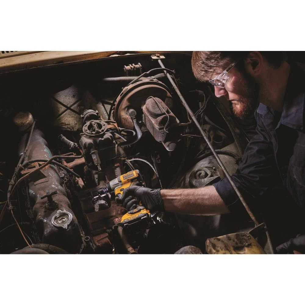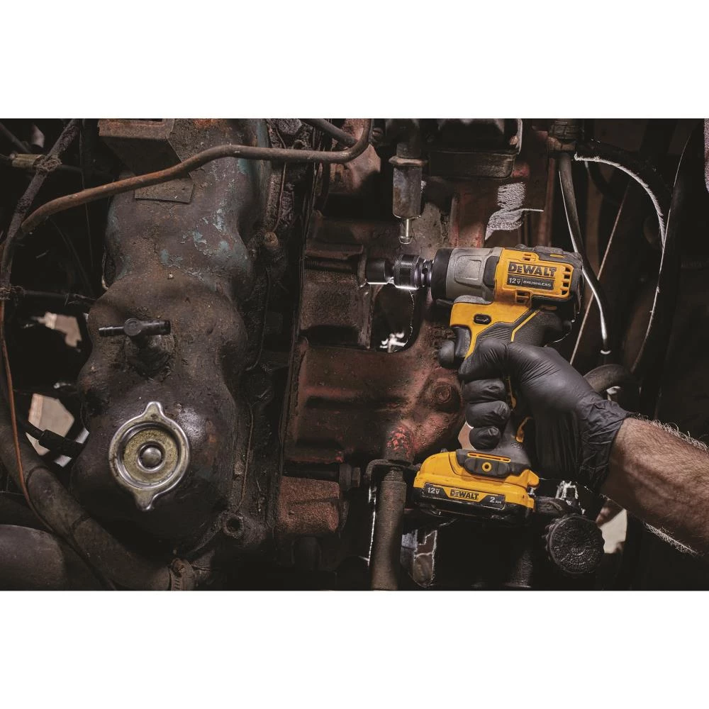 - DCF902 12V MAX Brushless 3/8-in impact wrench has 30% more torque (when using DCB122 2 Ah battery vs DCF813 using DCB120 1.3 Ah battery) – battery sold separately