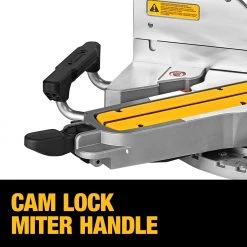 The DEWALT DWS779 sliding compound miter saw is precision at it’s toughest, delivering accuracy and capacity for everyday jobsite use.. This miter saw is designed with a powerful 15-amp, 3800 RPM motor that delivers extended power and durability. Tall sliding fences support 7-1/2-in of crown nested and up to 2×14 dimensional lumbers at 90Ð and 2×10 at 45Ю A cam lock miter handle with detent override delivers quick and accurate miter angles.