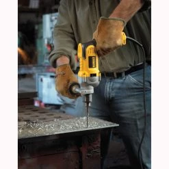 The DEWALT® DWD210G is a 1/2 In. pistol grip drill. This DeWalt drill offers users increased performance on the jobsite. Built with a 10 amp motor, this new drill provide electricians, plumbers, mechanical contractors, HVAC professionals, metal fabricators, carpenters and professional contractors with enough power to complete heavy-duty jobsite applications. The new motor design has approximately 40% more copper than previous models at the same motor size, offering users up to 50% more power, more torque, and 0-1, 200 RPM for increased drilling performance.