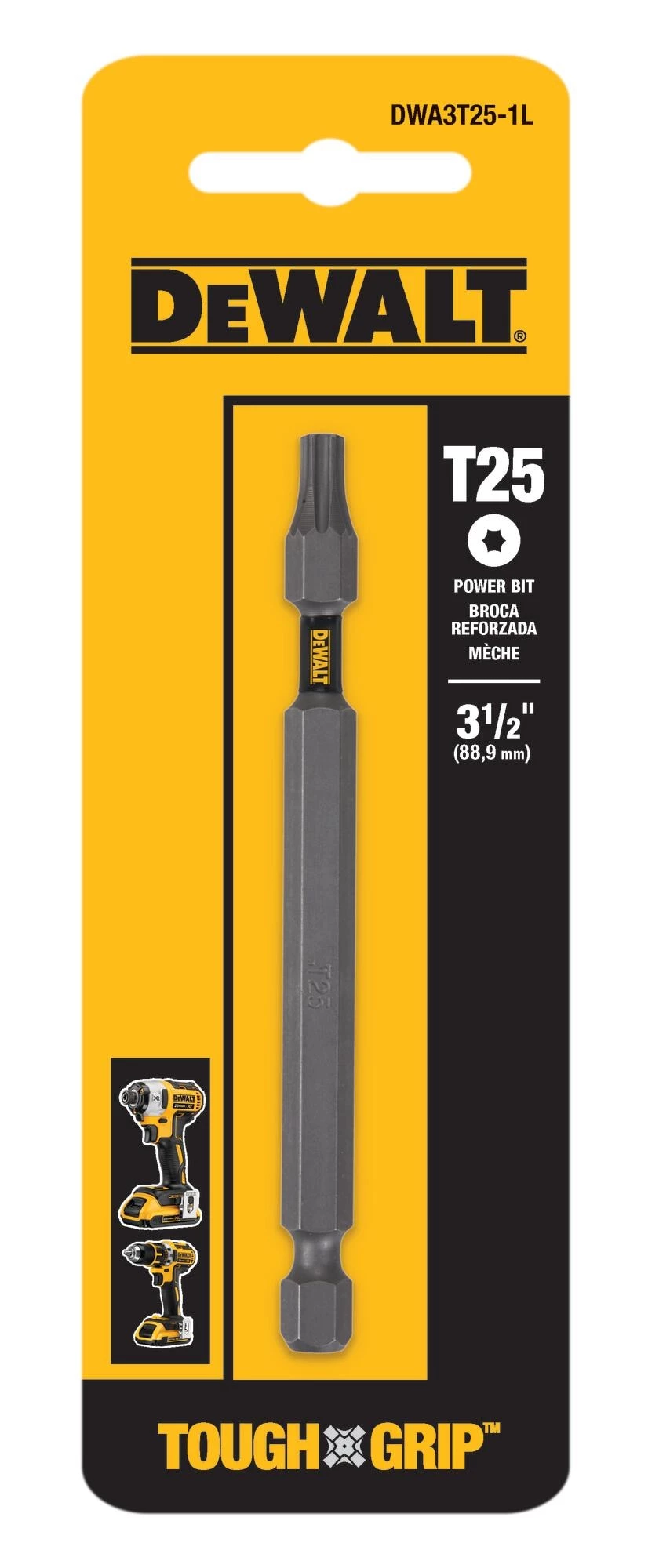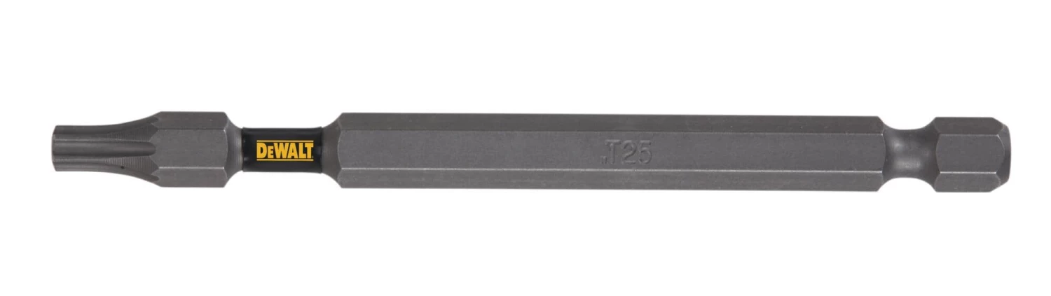 Improve your arsenal of screwdriver tools and accessories. DEWALT features the TOUGH GRIP™ T25 Torx high-speed steel hex shank screwdriver bit which stays true to the brand’s signature quality and durability. This 3-1/2-in screwdriver bit is manufactured with shock-resistant steel and designed with a hardened core for optimal durability. It’s heat-treated, too, to improve its resistance to breakage and wear. Regardless of how tough the drilling or driving job is, you can be confident that this screwdriver bit won’t easily chip or break. Don’t wait for your next project to start before adding this to your tool box. Shop this and other DEWALT products at Lowes.com today.