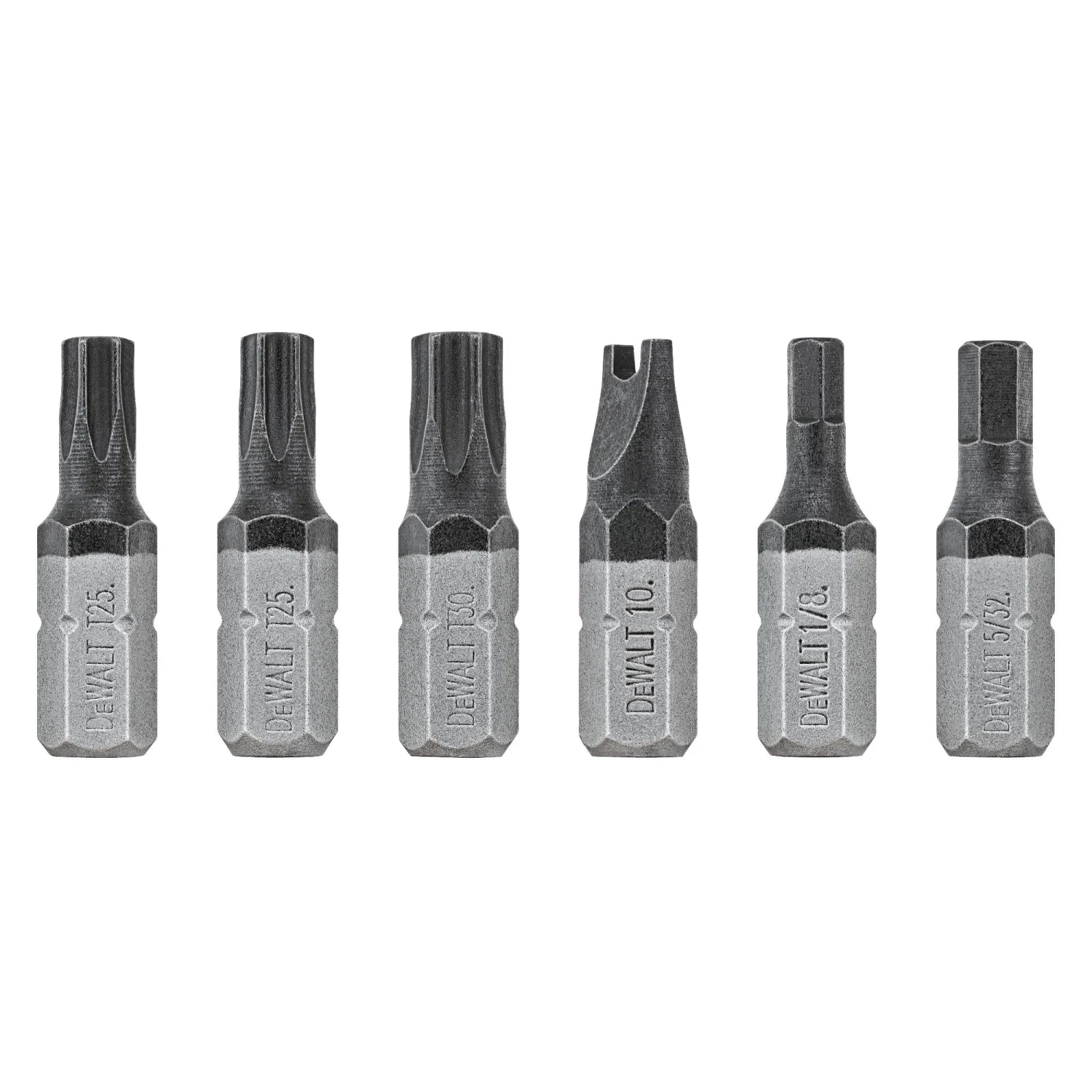 - Includes 6 bit tips: (2) T25, (1) T30, (1) TT10, (1) 1/8-in, and (1) 5/32-in