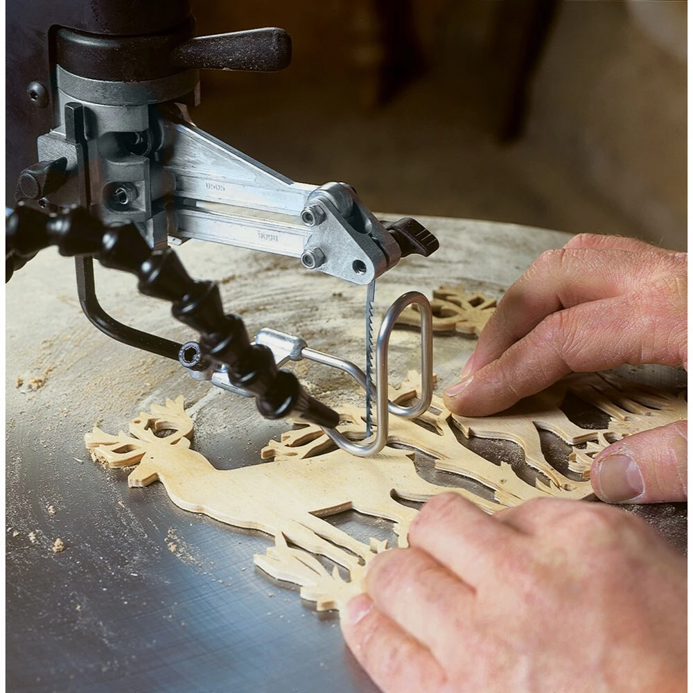 - Arm lifts so that blade can be easily threaded through the material for inside cuts