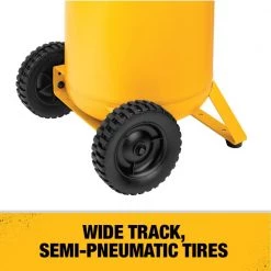 The DEWALT® D55168, heavy duty 15 Gallon, 225 PSI wheeled compressor is an oil-free compressor that delivers 5.4 CFM at 90 PSI, with an efficient, high-pressure technology that allows for longer tool runtime and increased pump/motor life. This compressor is perfect for powering a dual-action sander or a random orbit sander, or fastening using impact wrenches and ratchet wrenches, or powering grinders, cut-off tools, and reciprocating saws. Also useful in supplying power for spray guns in painting, gluing, or lacquering applications. Compact design allows for easy transport and storage.