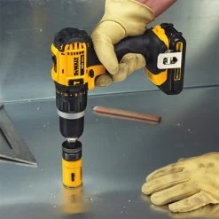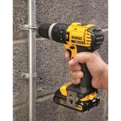 The DEWALT 20 V max lithium ion compact hammerdrill/driver has a compact, lightweight design that easily fits into tight areas. Its high speed transmission delivers 2 speeds (0 to 600 and 0 to 2, 000 rpm) for a range of fastening and drilling applications. It has an ergonomic handle for comfort and extra control. The heavy-duty 1/2-in ratcheting chuck provides superior bit gripping strength. The charger is Energy Star qualified for a better environment. The kit includes a 1/2-in hammerdrill driver, two 20 V max lithium ion battery packs, fast charger, belt hook, on-board bit holder, and a kit box, and is backed by the DEWALT 3 year warranty.
