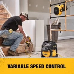 This fan offers the options you need on the jobsite. Add it to your 20V MAX system of tools, or run it by a cord. Stand it up, hang it, or mount it where you need, so it is not in the way. Plus, it offers variable speed control so you can set the power you want.