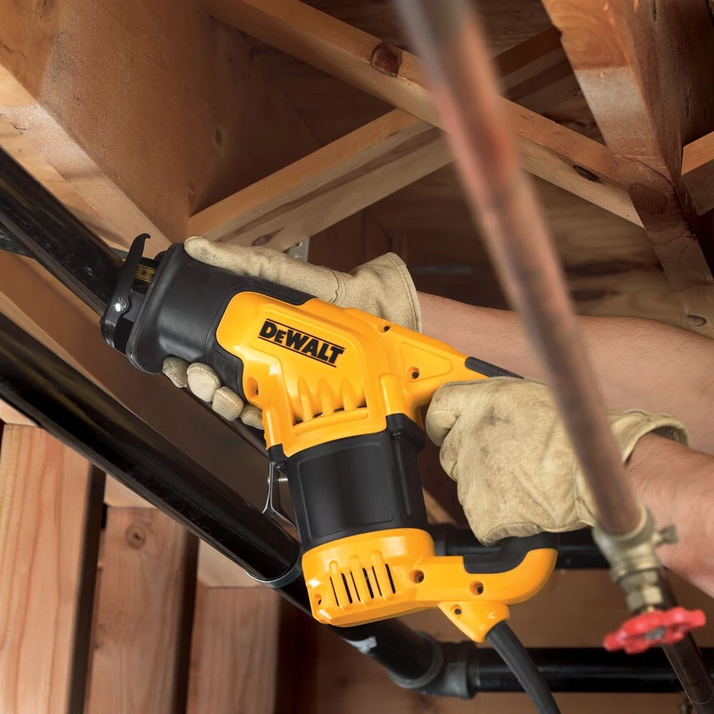 DEWALT 12 amp compact reciprocating saw. Compact design at only 14.5 In. in length for easy access to tight areas and more flexibility of applications. Lightweight and balanced for additional control at only 6.8 lbs. Fixed/pivoting shoe provides leverage for different applications.