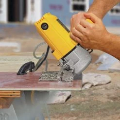 The DWC860W 4-3/8-in Wet/Dry Handheld Tile cutter has a powerful 10.8 Amp motor to deliver power for cutting through granite, porcelain, marble and glass, yet it is lightweight and compact to reduce user fatigue. The DWC860W is ideal for back splash, threshold and plank and large format tile work. The flow adjustable water connection keeps the blade and material cool while helping to reduce water puddles in the work area.