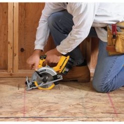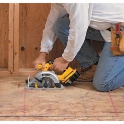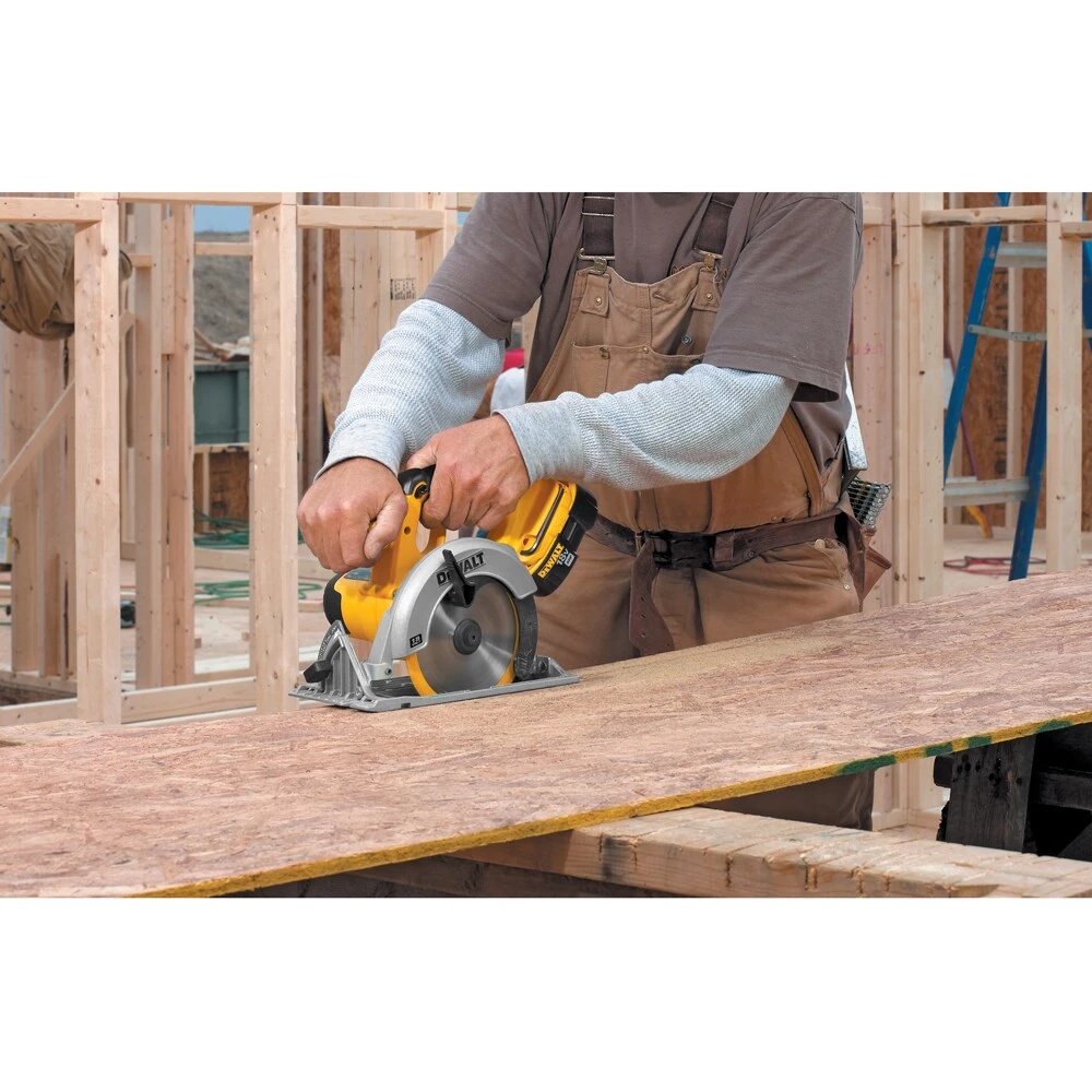 The DeWalt DC390 is a 18 Volt cordless circular saw – bare tool. The saw uses 6-1/2 In. carbide tipped blade for 2 times cutting capacity at 90 and 45 degrees. It has high strength magnesium shoe and upper guard provides increased durability. 0- to 50-degree bevel capacity provides additional capacity for a multitude of applications. The DeWalt DC390 features fan-cooled motor with replaceable brushes for maximum power and durability.