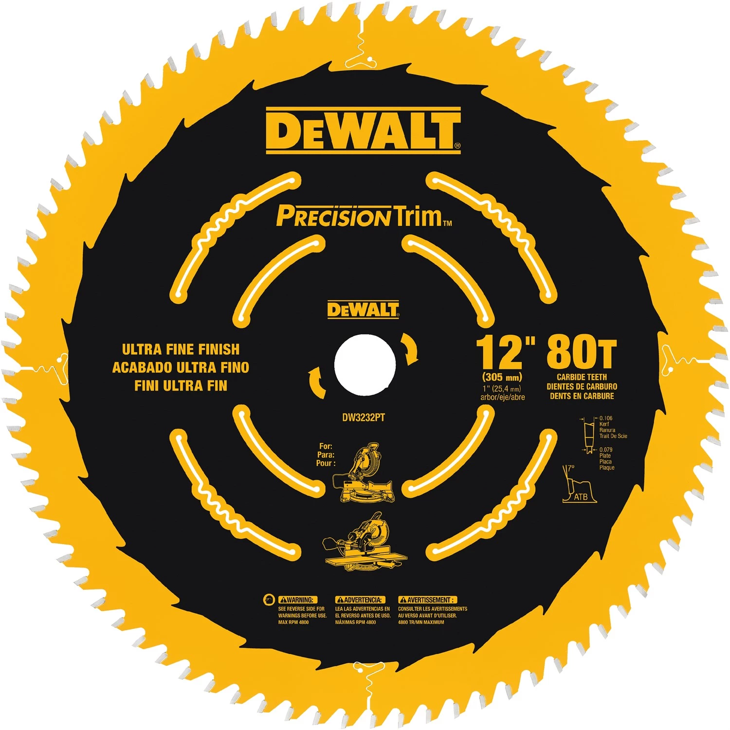 The DEWALT Precision Trim 12-inch 80-tooth carbide miter saw blade will serve you well for many woodworking projects involving plywood, softwood (fir, pine, redwood, etc.), and hardwood (walnut, mahogany, cherry, etc.). It’s a woodworker’s tool of trade when dealing with construction-related projects, such as home improvement, decking, cabinetry, joinery, furniture-making, and more. Its blade lives up to its name: the premium micro-grain carbide creates ultra-sharp teeth for extremely precise trimming. With its sharp edges, it reduces splintering and breakage and helps you stay steady on the cut line. There are exclusive dampening slots that lessen the vibration. The blade comes with a 30-day no-risk satisfaction guarantee. Shop the 12-inch 80T miter saw blade at Lowes.com today.