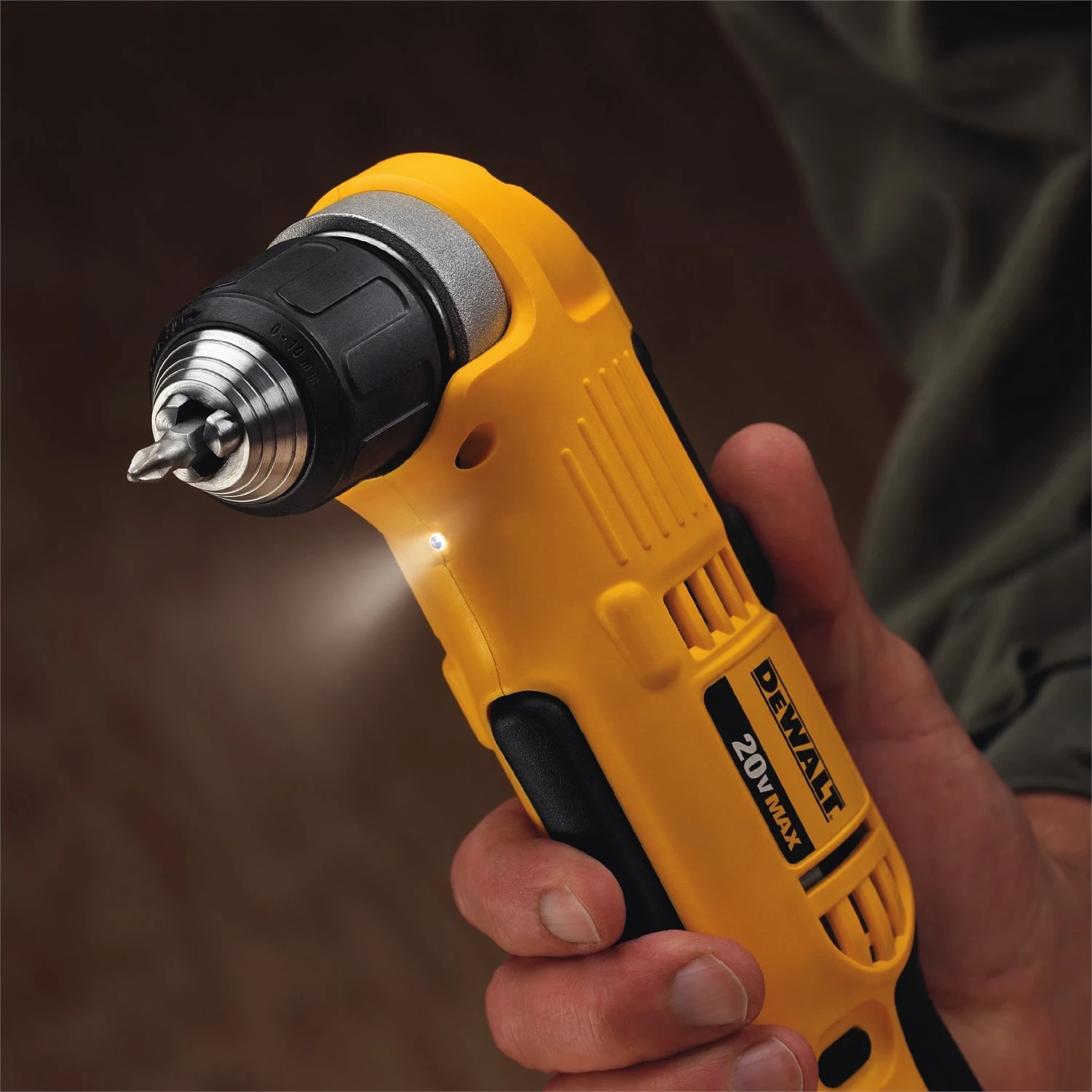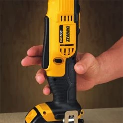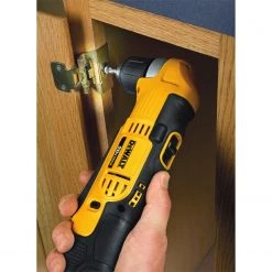 The DEWALT 20 V max lithium ion 3/8 In. right angle drill/driver has dual speed ranges (0-500/0 to 1500 rpm) for increased user flexibility, providing a wide range of applications. It has a very compact front to back length (only 4 In.) allowing users to fit it into hard to reach spaces that other drills cannot access. The multi-grip trigger provides comfort and convenience, allowing the user to get into tighter spaces while still having access to the trigger. The charger is Energy Star qualified for a better environment. This kit includes a 3/8 In. right angel drill driver, a 20 V max 1.5 Ah compact Li-ion battery, a no.2 phillips bit, and a kit box, and is backed by the DEWALT 3 year warranty.