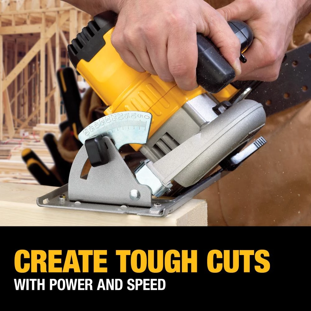 - DCS393 20V MAX lithium circular saw; 6-1/2-in carbide blade can cut 2×4 boards at a 45-degree angle in a single pass