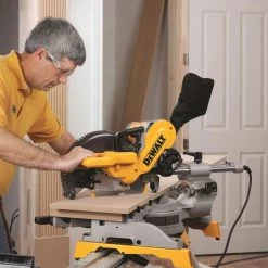 The DW717 10-in double-bevel sliding compound miter saw has an exclusive bevel detent system with seven positive stops to deliver fast accurate repeatable cuts. Best in class cross cut capacity 12-in at 45° angle using back fence design. Features stainless steel miter detent plate and cam miter lock for accuracy, durability and easy adjustments.