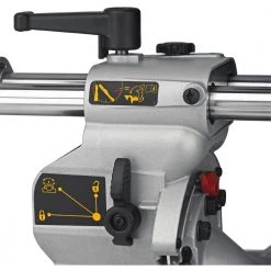- Dual horizontal steel rails with innovative clamping mechanism and linear ball bearings deliver an accurate, durable, and compact saw