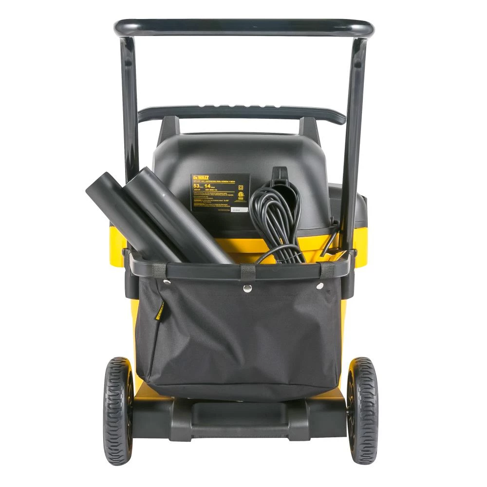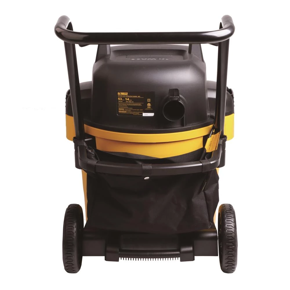 The 14 Gallon wet/dry vacuum has a convenient handle and large rear wheels for large clean-up applications. It also features a fine-dust cartridge filter for small, dry debris and wet materials. This vacuum also features a strong handle for easy carrying, large on/off switch with water-resistant design for safe and quick access, convenient, built-in 20 Ft. power cord and accessory bag to get all your accessories/tools organized. Swiveling casters provide ease of movement in any direction while a built-in tank drain makes draining easy.