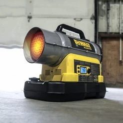 For the first time ever in forced air kerosene, DEWALT brings you a truly cordless heater. No cords, no hoses, just remarkably portable heat. Utilizing the DEWALT lineup of 20V max and 60V flex volt battery families, just fill the tank with any of the approved fuels and blast the cold out with 90,000 BTUs. Power down to 75,000 BTUs to keep the temperature just right, all while saving fuel as the thermostat cycles the unit on and off at just the right comfort setting. The DEWALT cordless kerosene heater is also equipped with a hybrid power system allowing you to run AC power when batteries are unavailable. Its patented Quiet Burner Technology means the heater runs 40% quieter than any other forced air heater available today. All these and proven safety features you can trust make this the perfect heat solution for any cold-weather project.