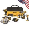 The DCK483D2 20V MAX XR compact 4-tool combo kit features our DCD791 compact drill/driver with two-speed transmission and LED lights for working in dark spaces. The DCF887 20V MAX XR brushless 1/4-in 3-speed impact driver is compact for fitting in tight spaces. Three LED lights make it ideal for working in the dark. The DCS570 20V MAX XR circular saw features a brushless motor which provides 5200 RPM maintaining speed under load. The DCL040 is a bright flashlight that illuminates your work area with LED output of 110 lm.