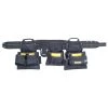 Take your welding to the next level by making it easier than ever to clamp down even the most unruly and awkward shapes securely in place with this portable DEWALT welding table. This heavy-duty steel welding accessory features an 18-inch x 46-inch tabletop with strategically located 3/4-inch diameter holes and slots to provide users with an array of mounting and clamping points to suit any size project. The folding legs feature not just one, but two locking systems to prevent them from retracting under heavy loads in addition to a cord minder on one leg. This convenient cord minder takes up slack cable and has clips that prevent the cord unwinding as you move around for the best welding angle. The base itself is designed so it can be used as an 8-inch high addition to an existing wood or metal work bench or as an adjustable height stand-alone work station up to 36-inches in height. For added versatility, a dedicated grounding stud provides a place for ground clamps and leads to connect that won’t get in the way and a tool holding ring makes a safe place to set welding guns and electrodes between uses. When the welds are done, the table easily folds and can be transported to the next job by the heavy-duty handle on the side.