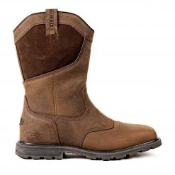 The DEWALT Stanton work boot is one you will be proud and happy to wear. Whether it’s working hard on a construction site, cleaning up around the ranch, casually around town or out to dinner, the Stanton is suitable for all conditions. It is made from full grain leather with a dark brown suede insert on the top end of the shaft. The Stanton is 100% waterproof and breathable using a full booty membrane. It has a steel toe for protection and a TPU shank for additional stability. The Stanton has DEWALT’s aerospace mesh lining, adding both comfort and breathability. For stylish looks and added durability the vamp is overlayed with triple-stitched sections of full grain leather. A full length, removable PU insole, with extra heel cushioning and arch support, helps absorb shock and provides all-day comfort. The Stanton also incorporates DEWALT’s Agion anti-microbial silver technology to help eliminate odor. These features, combined with a Goodyear stitched rubber outsole, that is slip and oil resistant, gives you a boot made for any job around the house or on the jobsite. Due to the construction of the Stanton, DEWALT suggests you order a 1/2 larger than your normal boot size. In keeping with the DEWALT history of quality and craftsmanship, DEWALT footwear is guaranteed to offer a level of fit, durability and comfort you would expect from footwear featuring the DEWALT name. The Stanton blurs the lines of work and lifestyle footwear.